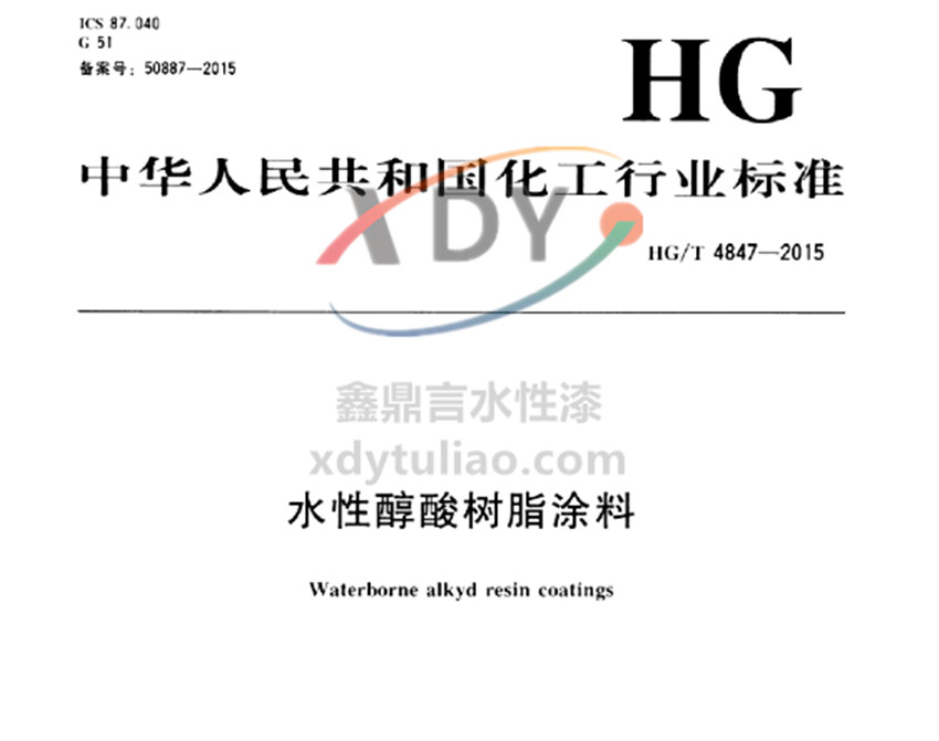 水性醇酸樹脂涂料化工行業標準HG/T4847-2015