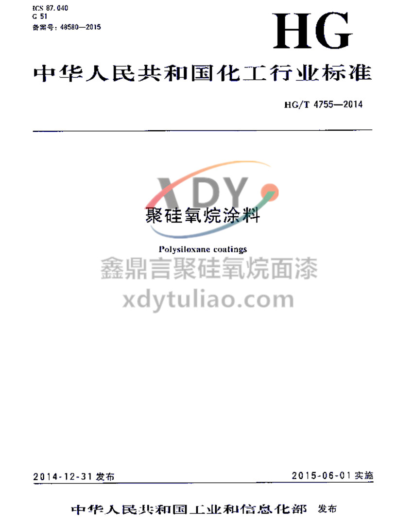 聚硅氧烷涂料化工行業標準HG/T 4755-2014